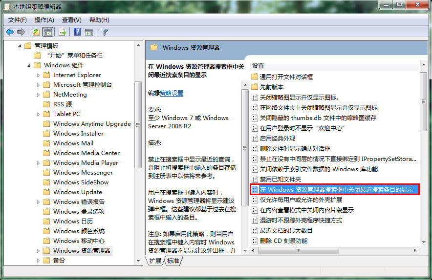 雖然win7系統(tǒng)給用戶提供方便的搜索欄功能,可是也容易泄漏用戶個人隱私,總不能每次進行搜索后都要清除搜索欄記錄,怎么樣才能從根本禁止顯示win7系統(tǒng)搜索欄記錄呢?現(xiàn)在我們就給大家演示使用本地組策略編輯器進行關(guān)閉win7系統(tǒng)搜索欄記錄的操作步驟。
