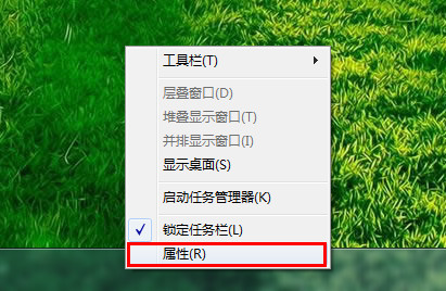 1、首先鼠標右鍵單擊任務(wù)欄,在彈出菜單欄中選取“屬性”選項,如圖所示: