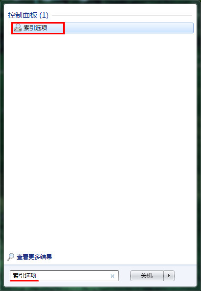 4、進入開始菜單欄,在搜索框中輸入并雙擊打開“索引選項”,如圖所示: