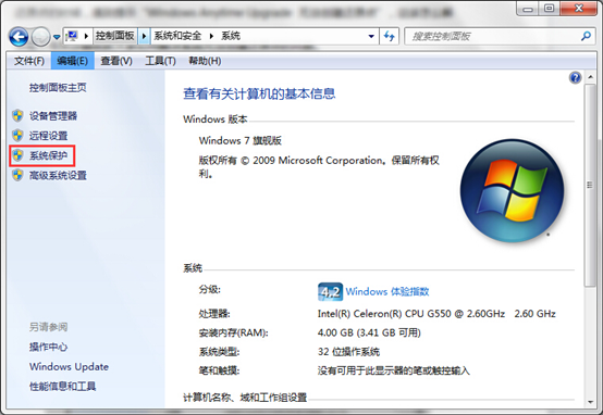 二、接著點擊“系統(tǒng)”,然后在彈出的窗口中選擇“系統(tǒng)保護”選項,如下圖所示: