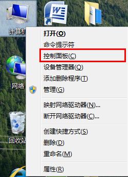 1、將鼠標(biāo)移到計(jì)算機(jī)圖標(biāo)上,單擊鼠標(biāo)右鍵,在彈出的菜單中選擇“控制面板”,如下圖所示: