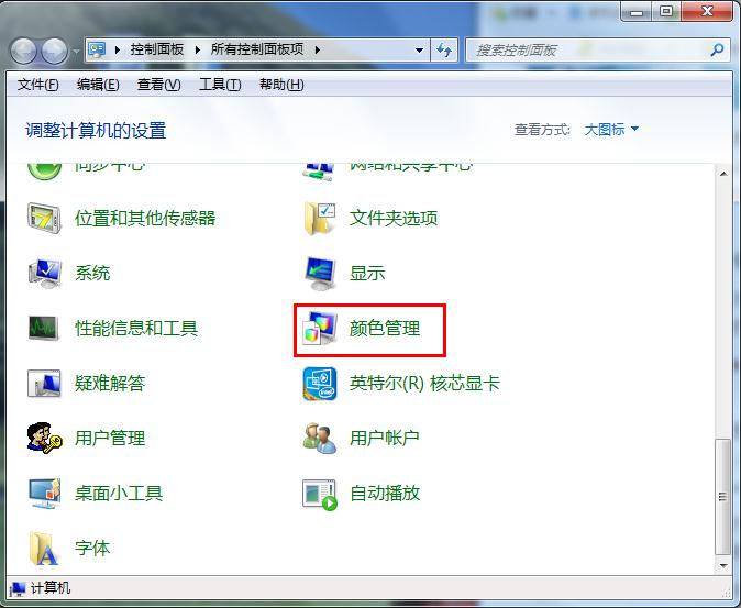 2、在控制面板頁(yè)面,點(diǎn)擊“顏色管理”,如下圖所示: