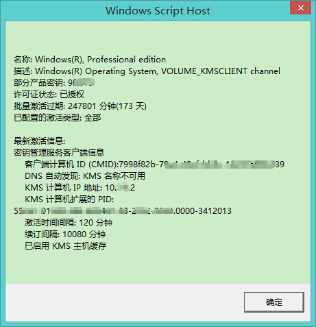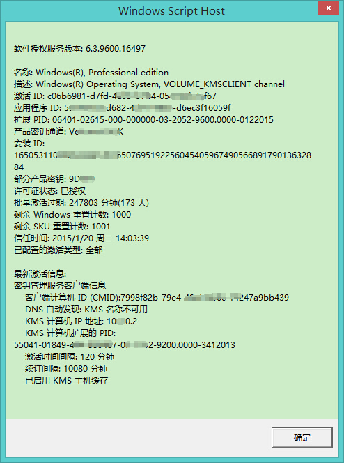 5、另外在運行窗口中輸入slmgr.vbs -dli也可以查看到系統(tǒng)版本級一些產(chǎn)品密鑰信息,如圖所示: