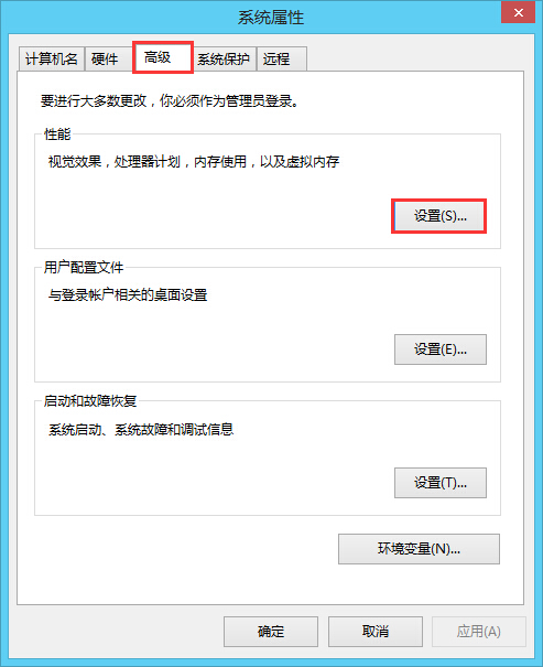 2、在系統(tǒng)屬性窗口中,點擊“高級--性能設(shè)置”,如圖所示: