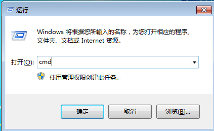 1、打開運行窗口(按win+r),輸入cmd,回車進入,如圖所示: