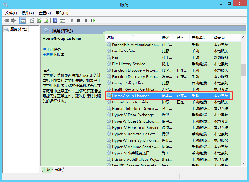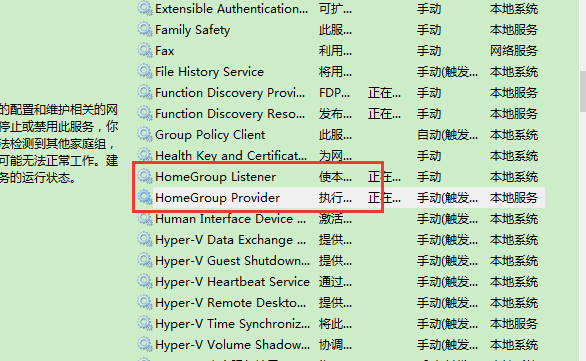 4、如果還是不行可以嘗試手動啟動HomeGroup Listener 服務和其下方的HomeGroup Provider服務,然后再按第3步的方法重新嘗試,如圖所示: