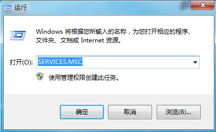 3、在運行窗口輸入SERVICES.MSC,點擊確定進入,如圖所示:
