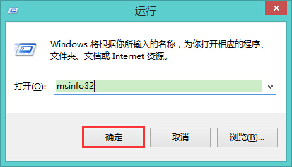1、在桌面上打開(kāi)運(yùn)行窗口(按win+r鍵),輸入“msinfo32”,點(diǎn)擊確定進(jìn)入,如圖所示: