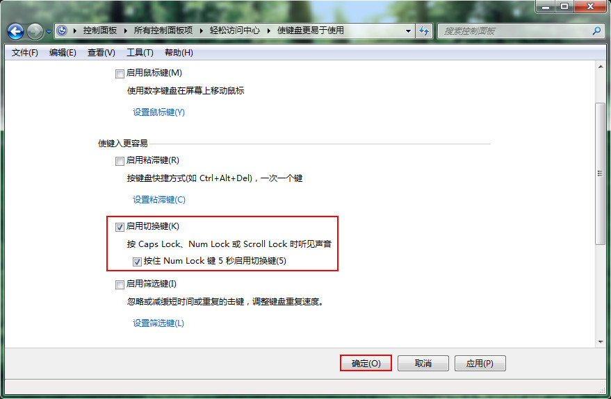 4、勾選“啟用切換鍵”選項,然后按下“確定”按鈕,如下圖所示: